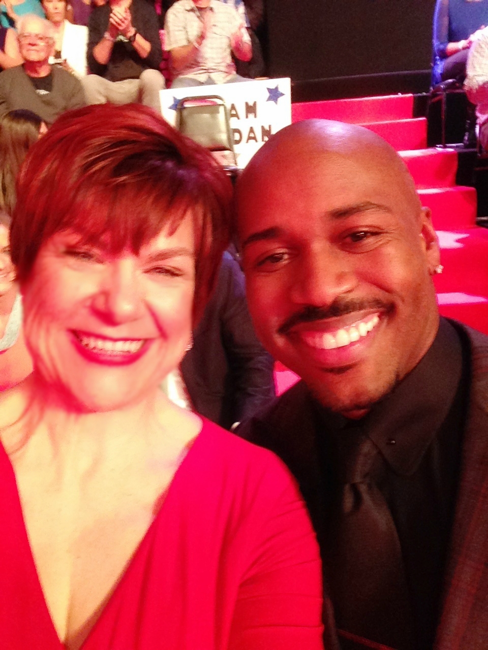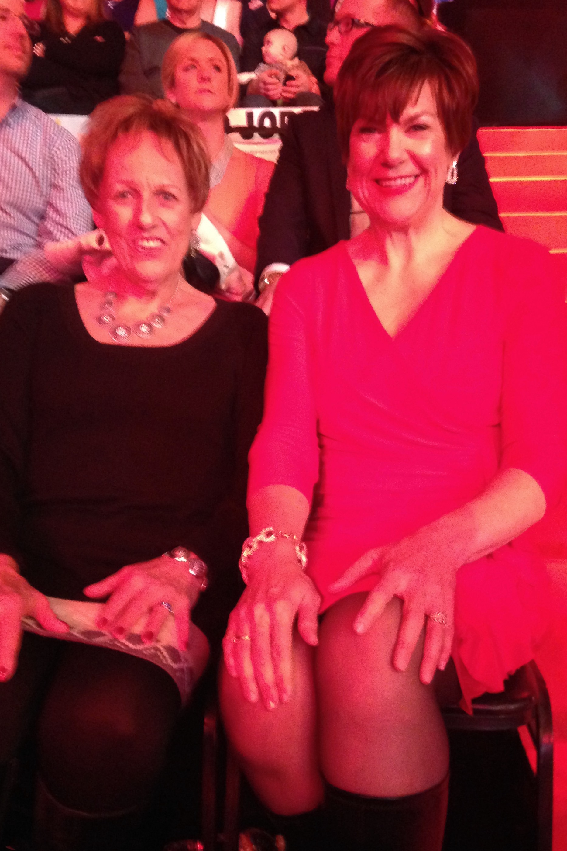 - Mom and I under the red lights getting ready for the live show to begin