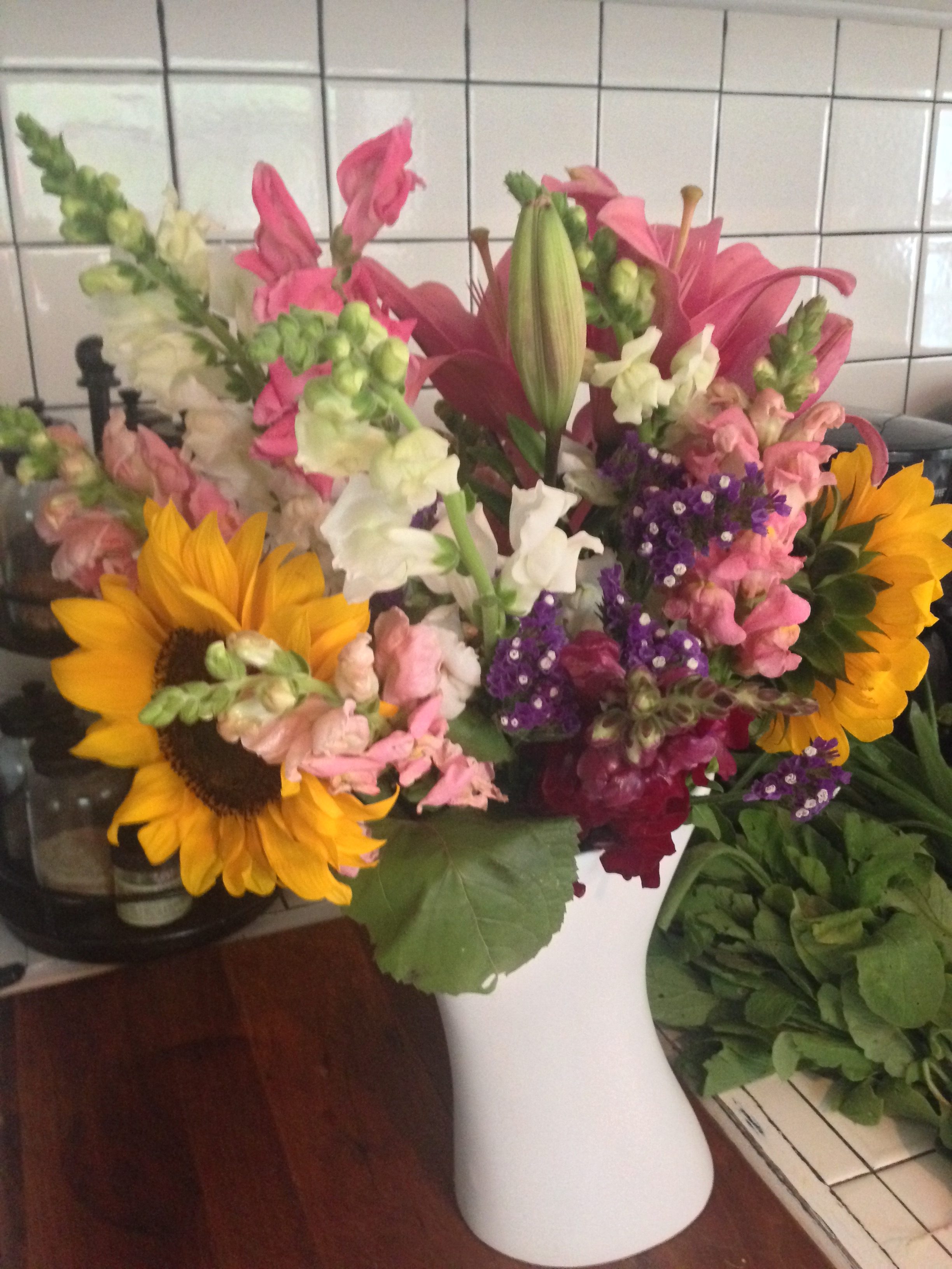 - Went to my local Farmers Market and bought lots of seasonal, wholesome goodies to make fresh salads, including beet salad (yum). And bought myself the most beautiful flowers!