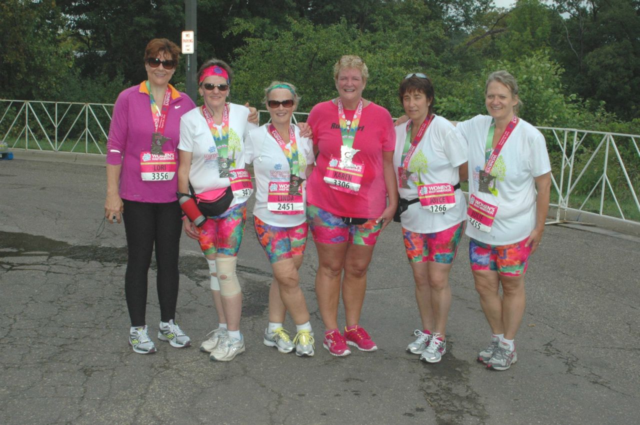 Seven of us, including Leif, participated in the Half Marathon. The truly remarkable part of the story: ALL (except coach Leif) were obese and inactive just two years ago. Collectively, the six of us have lost a total of 750 pounds in under 2 years! And, ALL of us completed a 13.1 mile marathon in under 4 hours either running and/or walking. Congratulations and thank you to these amazing women for sharing the experience. From Fitness North #4 they are: Joyce Deiter-Cunningham, Deb Frie, Linda Koenig, Karen St. Louis and Julie Langenbrunner Wolleat.