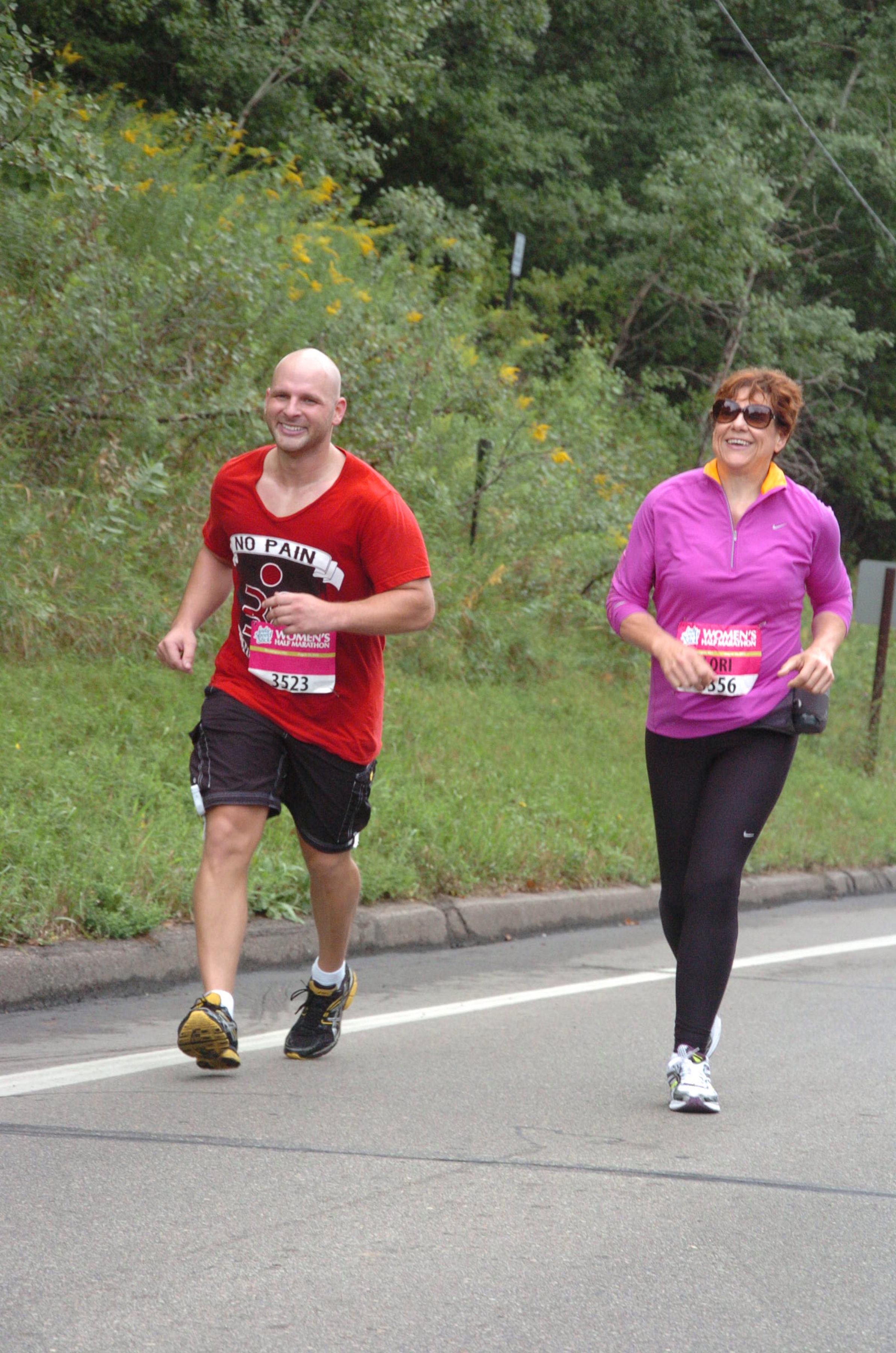My rock star trainer, Sandra Swami, prepared me for the race with training, race strategies and pep talks. And, taught me how to warm up and stretch properly pre- and post-race. Finally, my transformation coach and friend Leif Anderson, drove from Duluth to walk with me the entire race at a great personal sacrifice. He became my time-keeper/pacer, the on-course motivator, and coached me to a better time than I know I would have achieved on my own. It was incredible having him there.